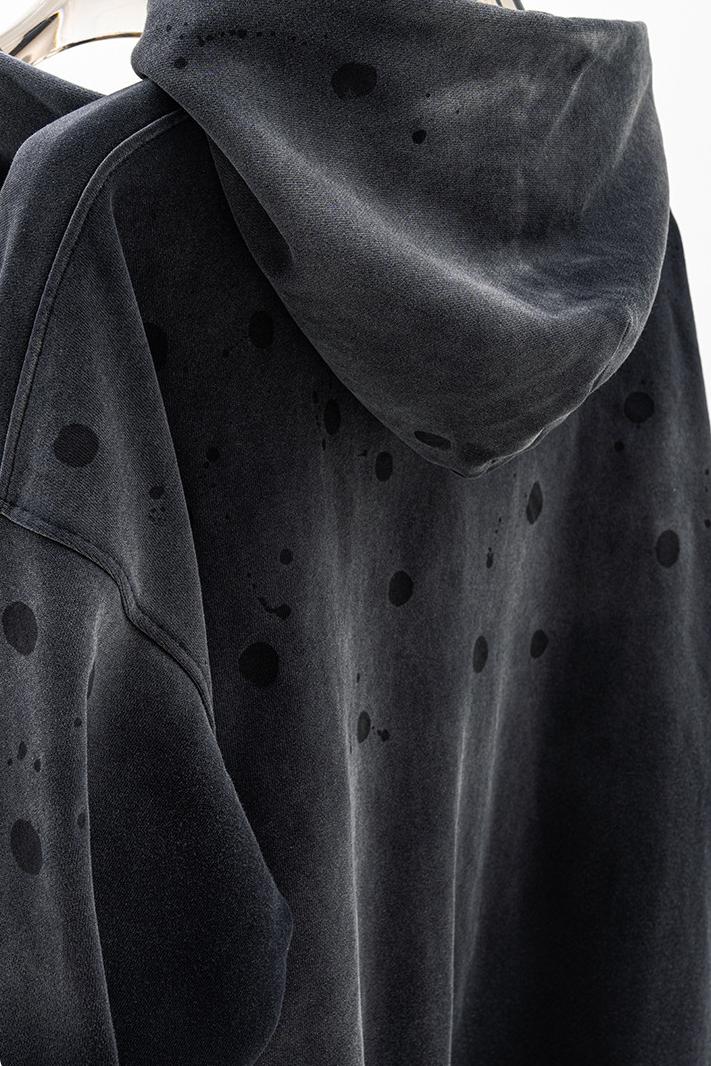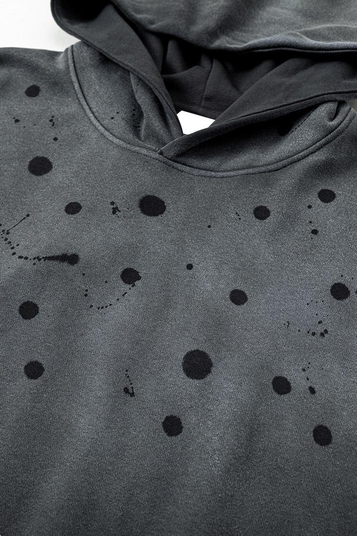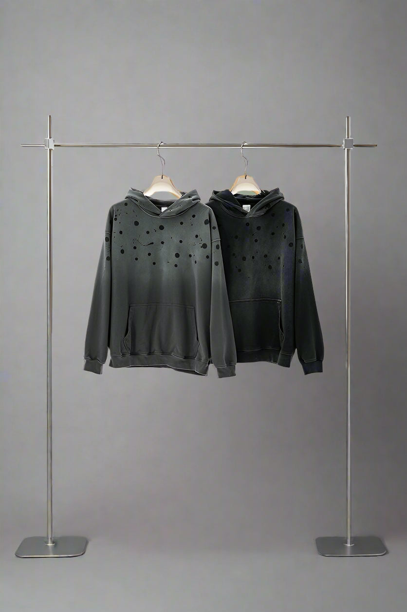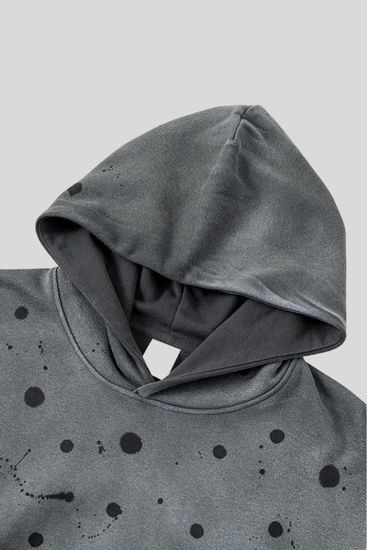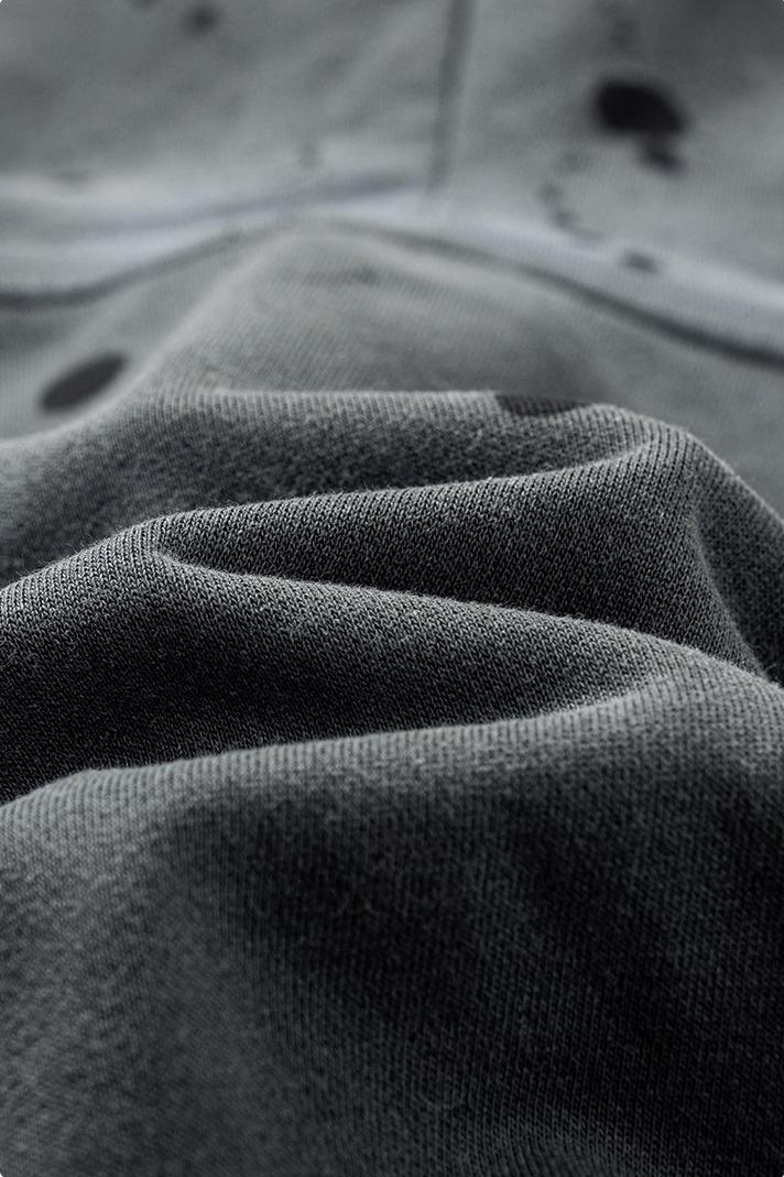 Wyrazista męska bluza z kapturem w stylu oversize to doskonały wybór dla fanów miejskiej mody i luźnych stylizacji. Wykonana w 100% z naturalnej bawełny, gwarantuje doskonały komfort noszenia, przewiewność i trwałość. Wzór z efektem nieregularnych plam i delikatnego cieniowania nadaje bluzie unikalnego, artystycznego charakteru. Klasyczna kieszeń typu kangurka oraz miękkie ściągacze zapewniają wygodę i praktyczność. Idealna do noszenia na co dzień – zarówno solo, jak i w komplecie ze spodniami w tym samym stylu.