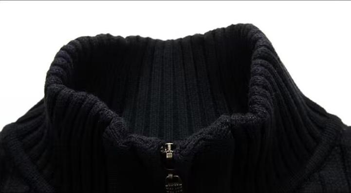 Stylowy kardigan męski o wyrazistym, grubym splocie to idealna propozycja na chłodniejsze dni. Zapinany na zamek model z wysokim kołnierzem łączy komfort noszenia z klasycznym, męskim stylem. Wykonany w 100% z bawełny, zapewnia dobrą cyrkulację powietrza i przyjemne uczucie na skórze. Doskonale sprawdzi się jako warstwa wierzchnia do codziennych stylizacji z t-shirtem, koszulą lub golfem.