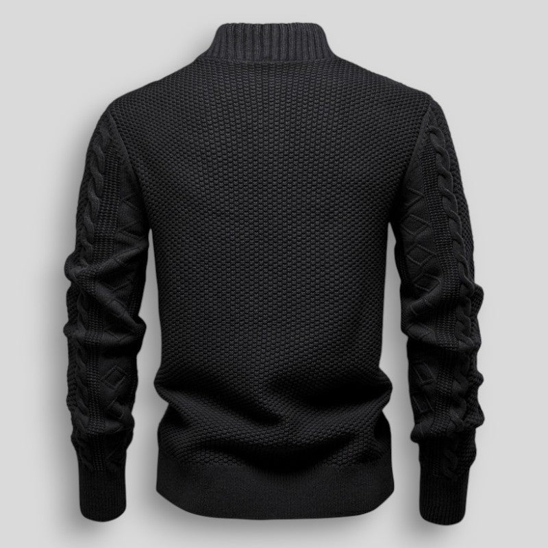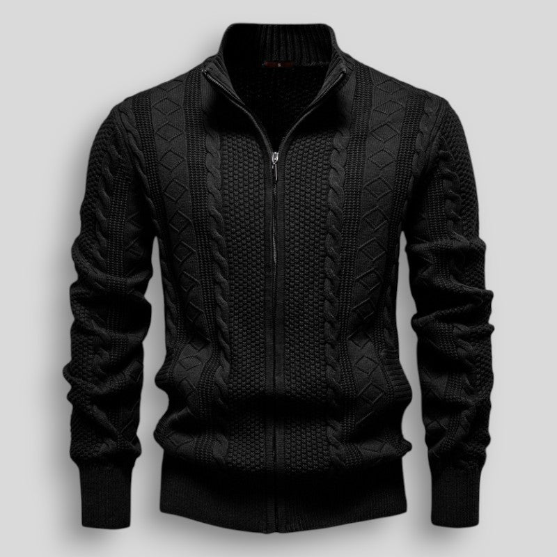 Ciepły i stylowy męski sweter z dekoracyjnym splotem typu warkocz to idealny wybór na chłodniejsze dni. Zamek na całej długości pozwala nosić go zarówno jako warstwę wierzchnią, jak i pod kurtką. Elastyczne ściągacze zapewniają dobre dopasowanie, a mięsisty materiał gwarantuje komfort noszenia. Świetnie komponuje się z jeansami, chinosami lub codziennymi spodniami.