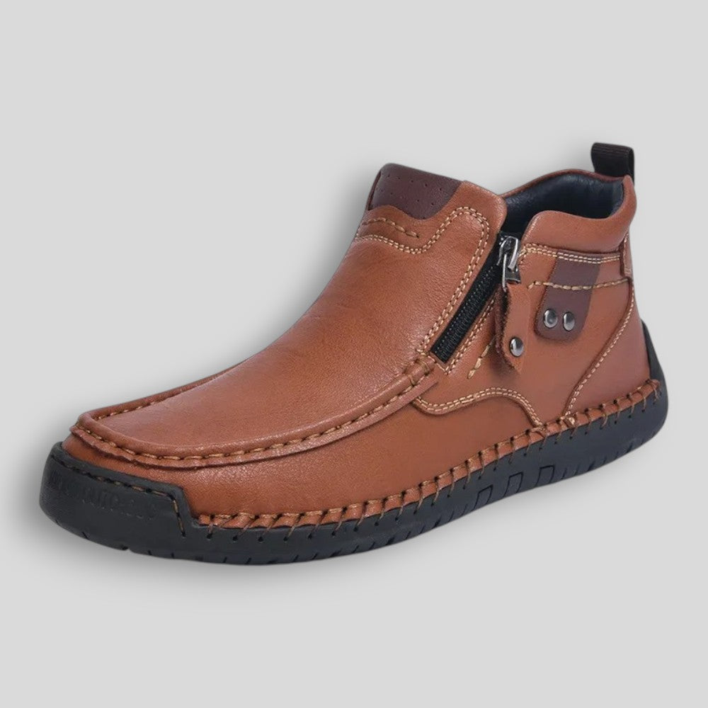 Męskie buty skórzane casual z zamkiem – lekkie, antypoślizgowe, codzienne obuwie trekkingowe