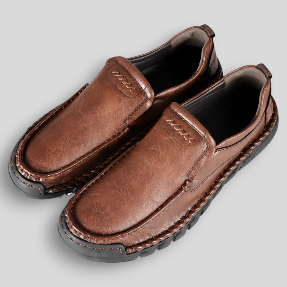 Stylowe i solidne męskie mokasyny wykonane z naturalnej skóry, idealne do codziennego użytku. Klasyczna cholewka z dekoracyjnymi przeszyciami podkreśla ich rzemieślniczy charakter, a masywna podeszwa zapewnia komfort i dobrą przyczepność. Wsuwany fason umożliwia szybkie zakładanie i wygodne noszenie przez cały dzień. To doskonały wybór dla mężczyzn ceniących wygodę w eleganckim wydaniu.