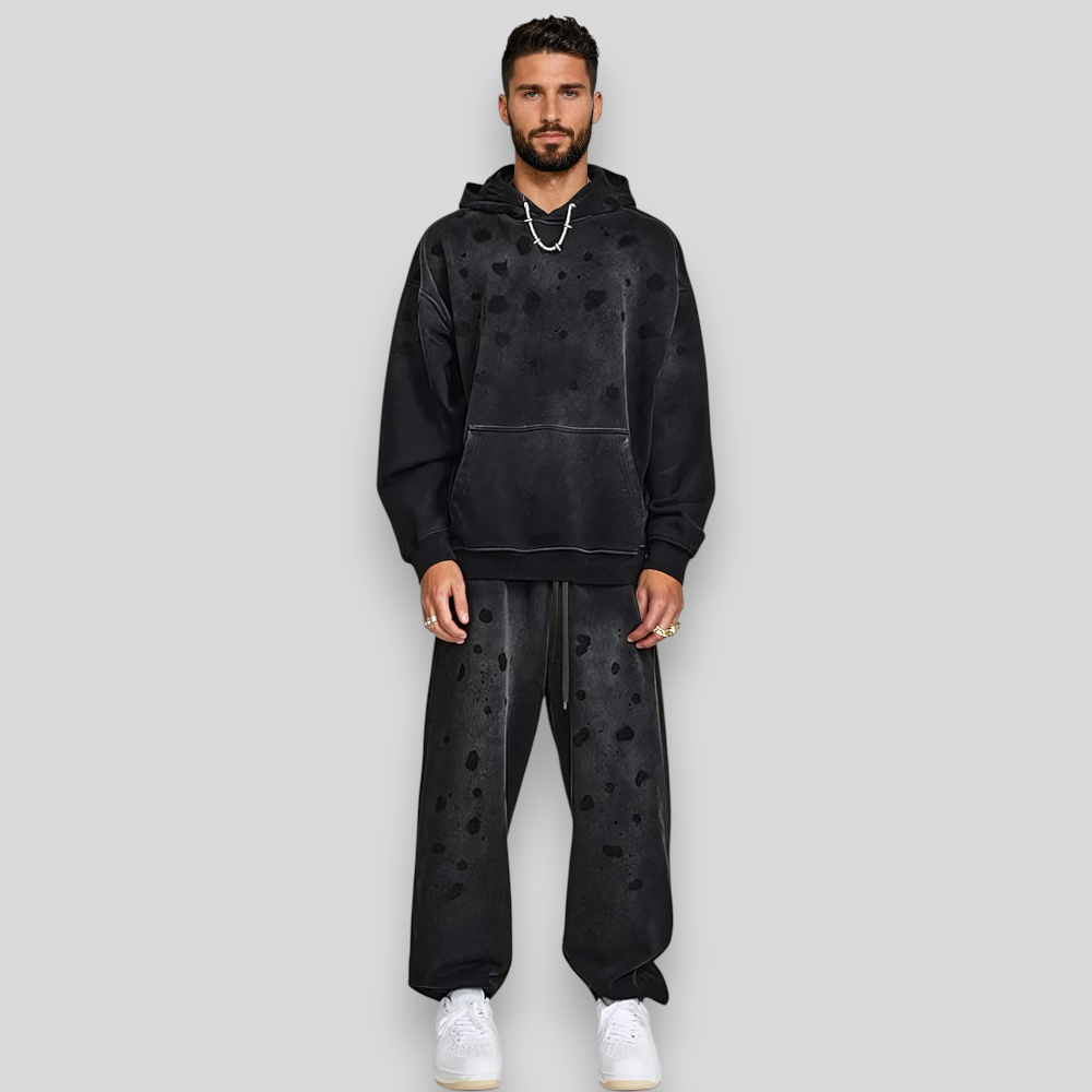 Męska bluza z kapturem oversize – streetwearowy styl z efektem cieniowania i plamkami