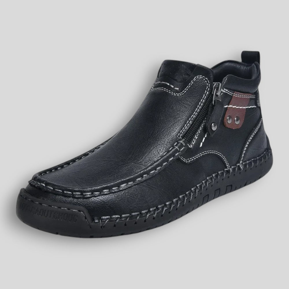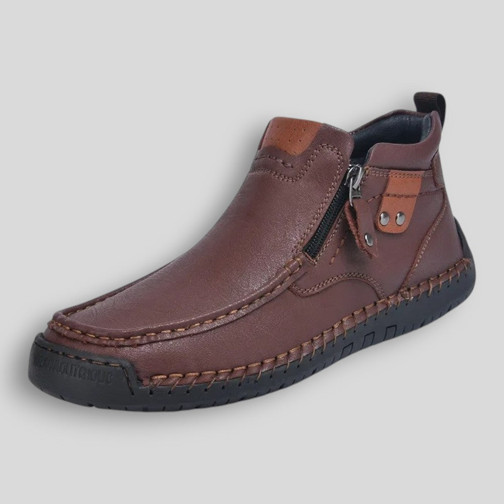 Męskie buty skórzane casual z zamkiem – lekkie, antypoślizgowe, codzienne obuwie trekkingowe