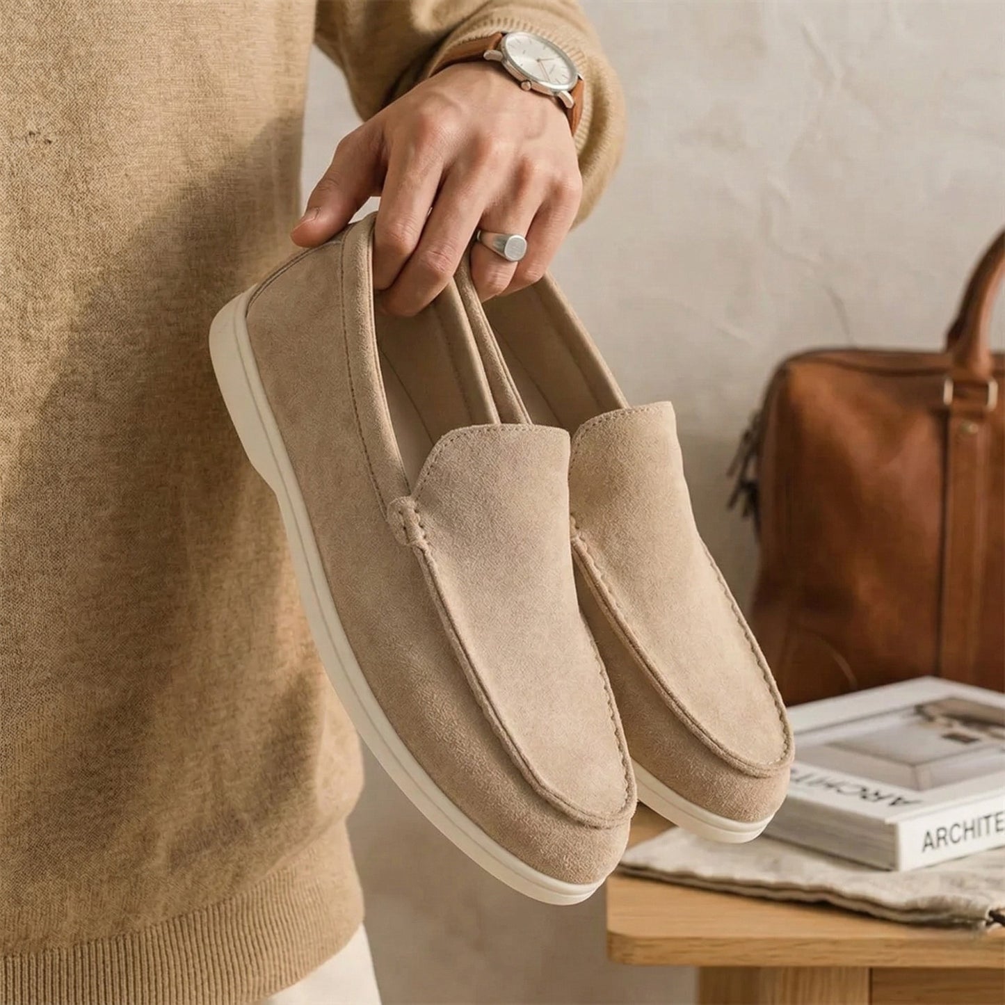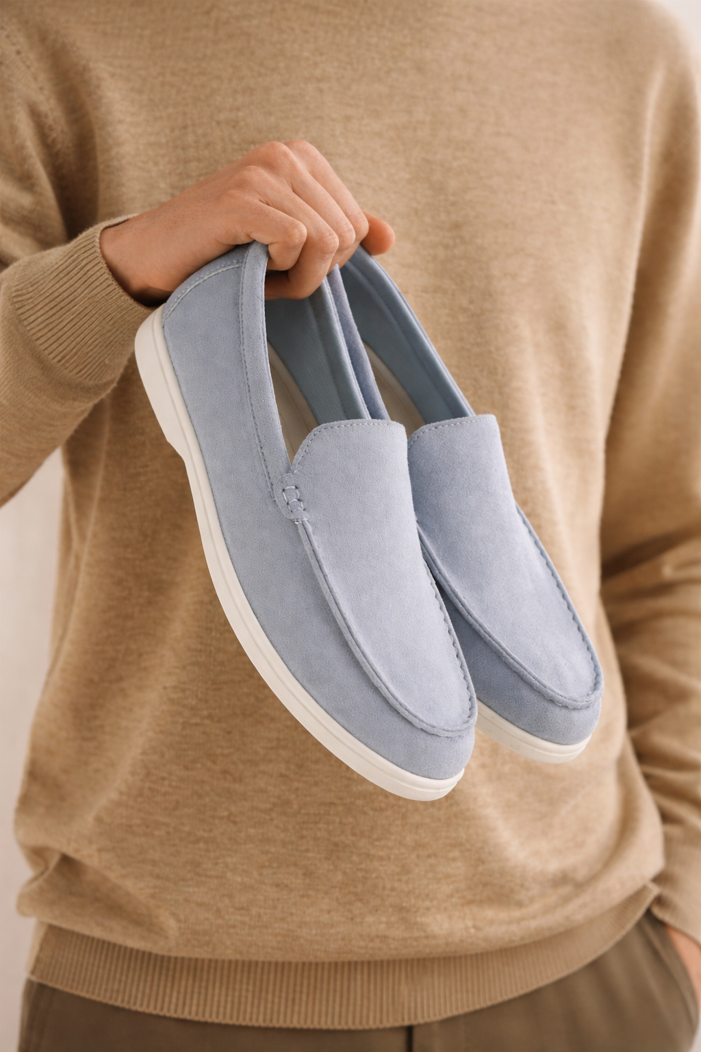 Męskie mokasyny zaprojektowane z myślą o wygodnym użytkowaniu na co dzień oraz w stylizacjach smart casual. Wsuwana konstrukcja pozwala na szybkie zakładanie i komfort noszenia w różnych sytuacjach. Klasyczna sylwetka z charakterystycznymi przeszyciami na przodzie podkreśla ponadczasowy charakter modelu. Miękka, zamszowa struktura cholewki nadaje obuwiu elegancki, a jednocześnie swobodny wygląd. Model dobrze komponuje się z chinosami, jeansami lub lekkimi spodniami materiałowymi.