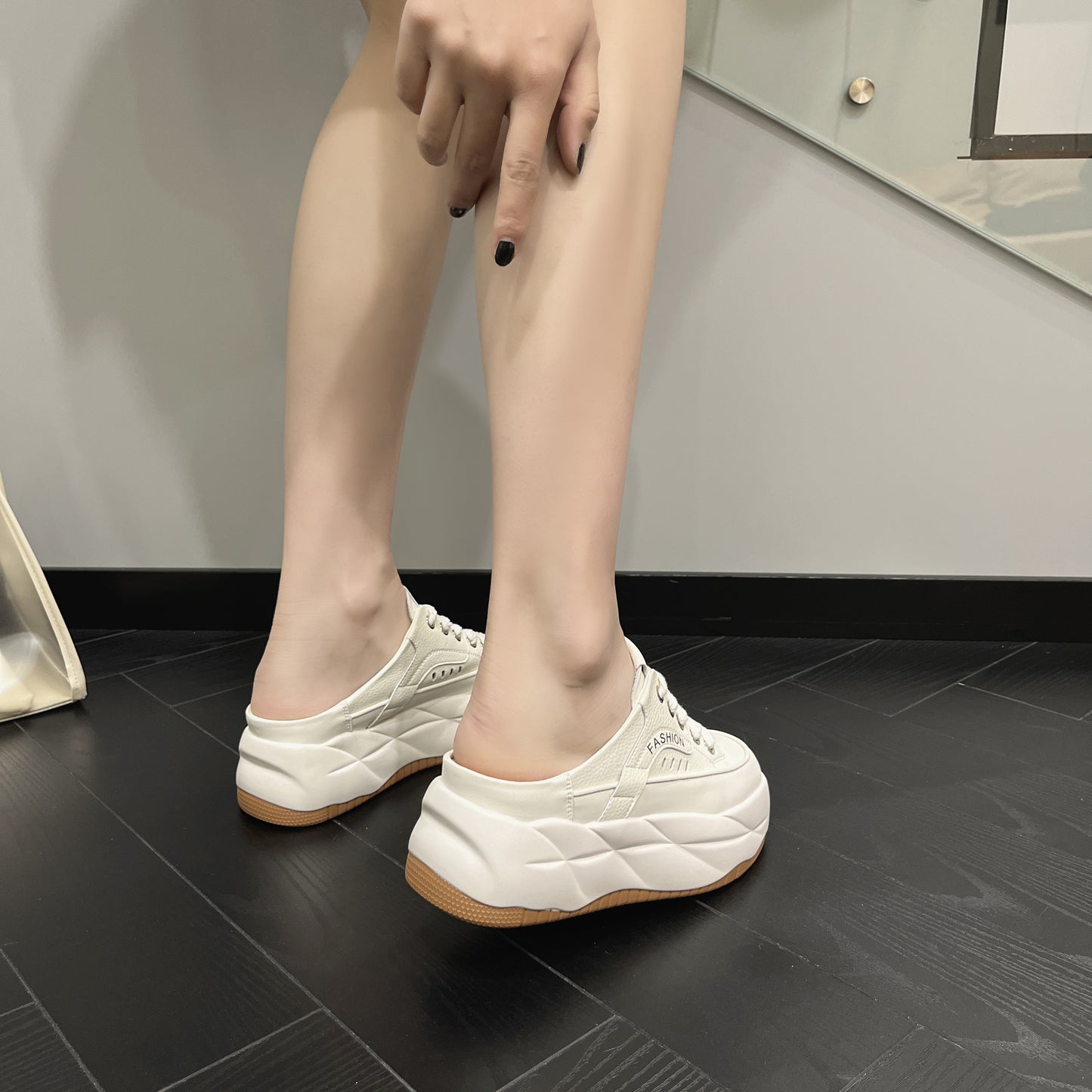- Fason sneakersów mule – odkryta pięta, nowoczesny look
