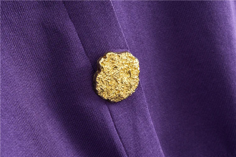 - Złote guziki na przodzie i rękawach jako stylowy akcent