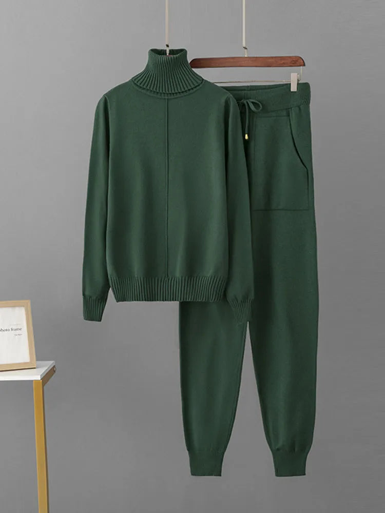 - Dwuczęściowy komplet: sweter z golfem + spodnie joggery