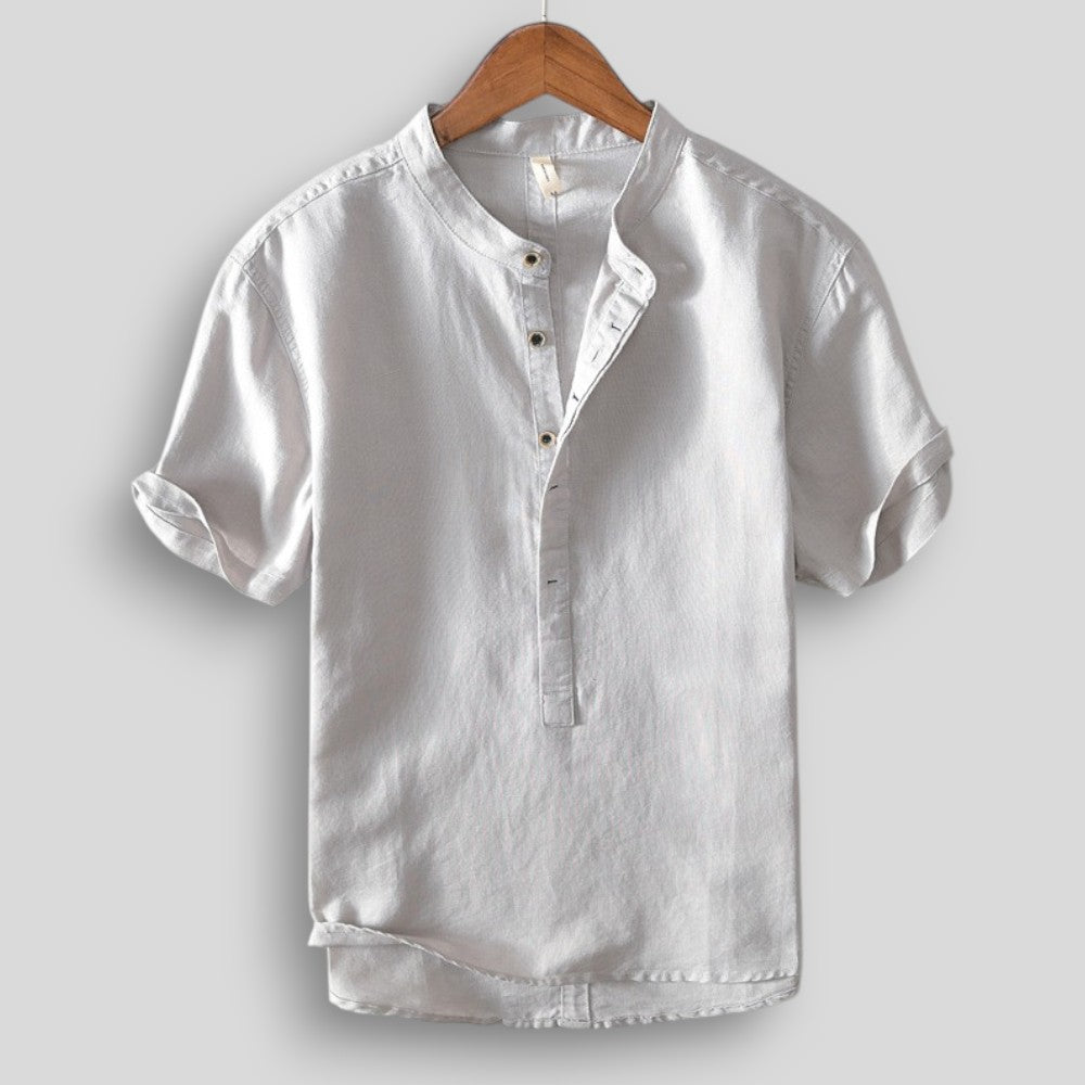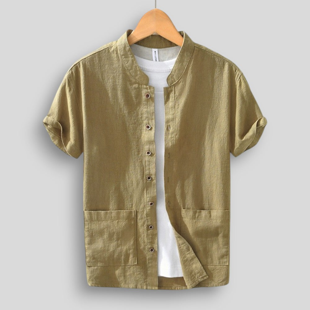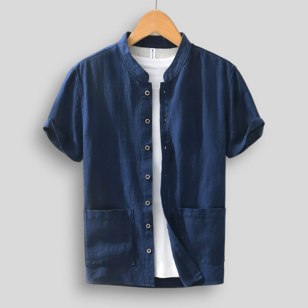 Bawełniano-lniana koszula męska ze stójką – lekka i stylowa na lato