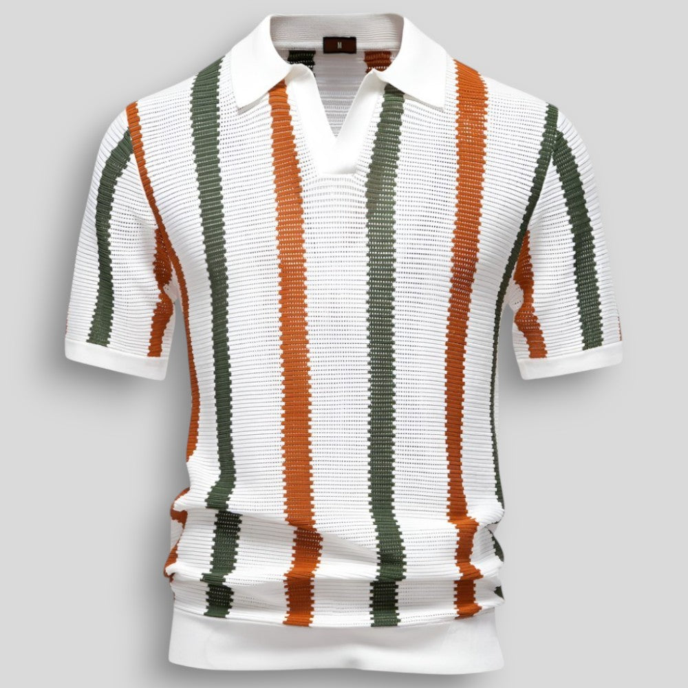Męska koszulka polo retro w paski – styl vintage, przewiewna dzianina, krótki rękaw