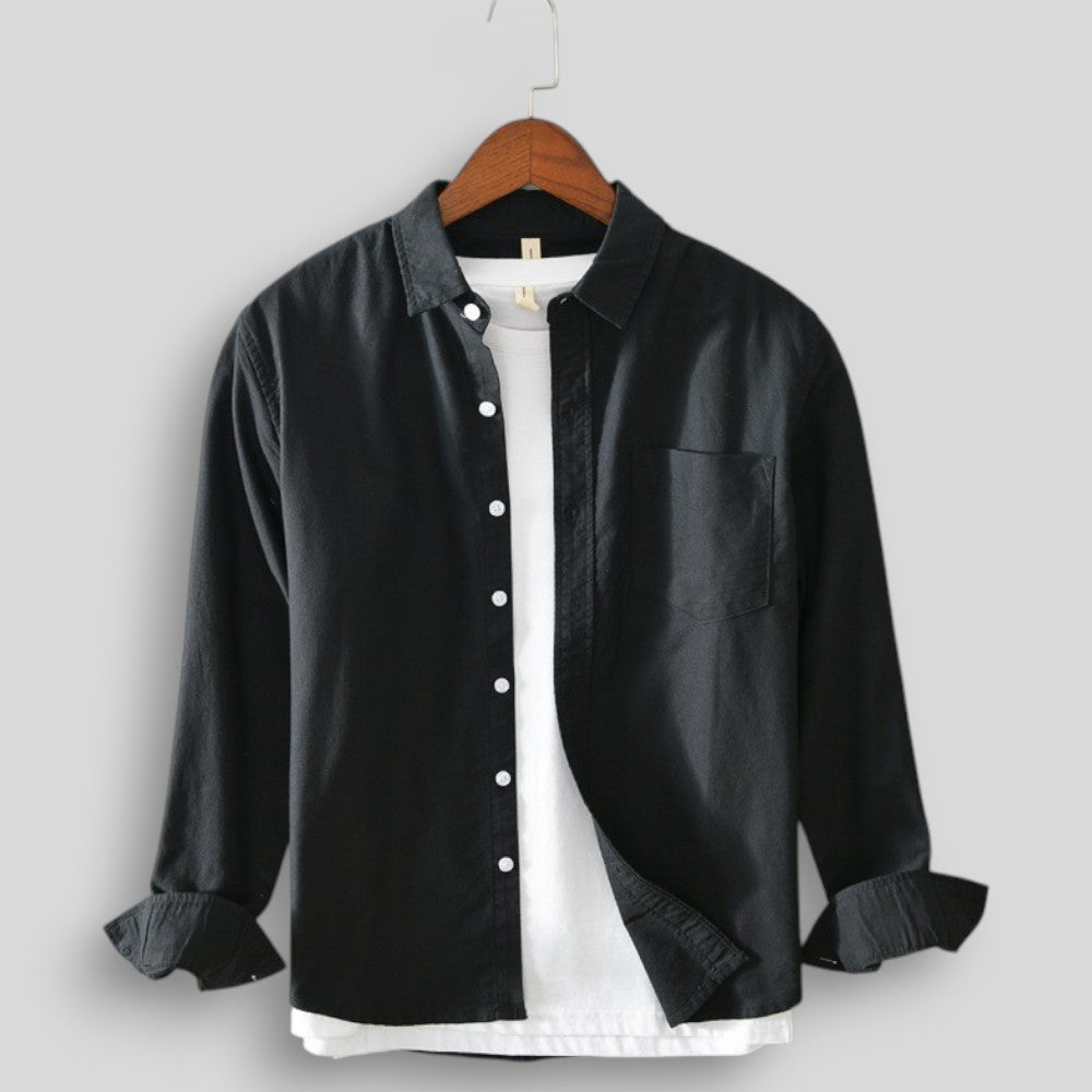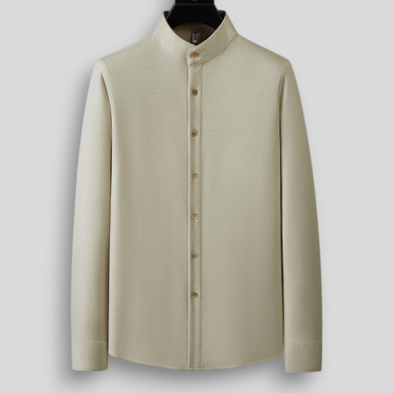 Bawełniano-lniana koszula męska ze stójką i długim rękawem – wygoda i styl na każdą porę roku