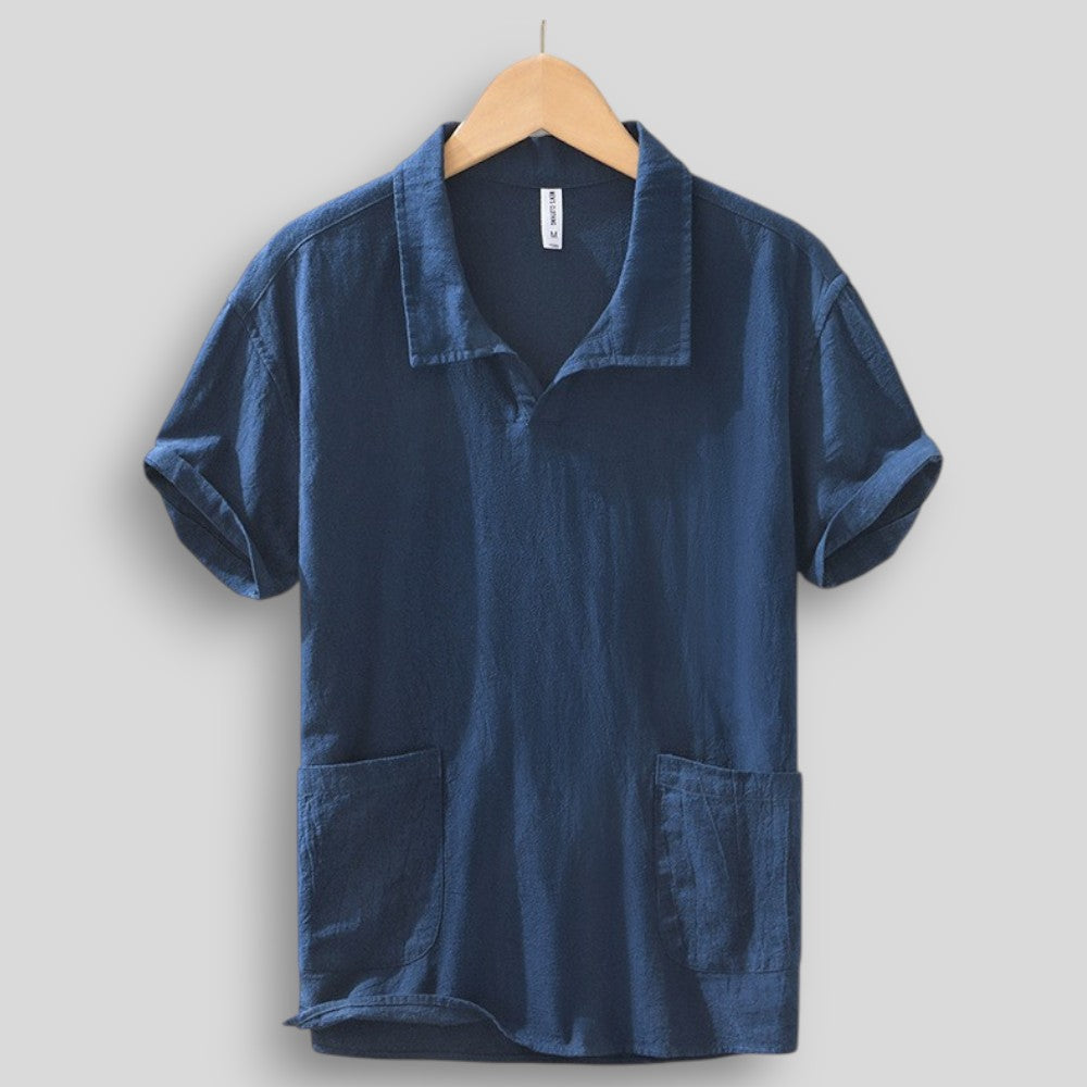 Bawełniana koszulka męska z kołnierzykiem i kieszeniami – styl casual na co dzień