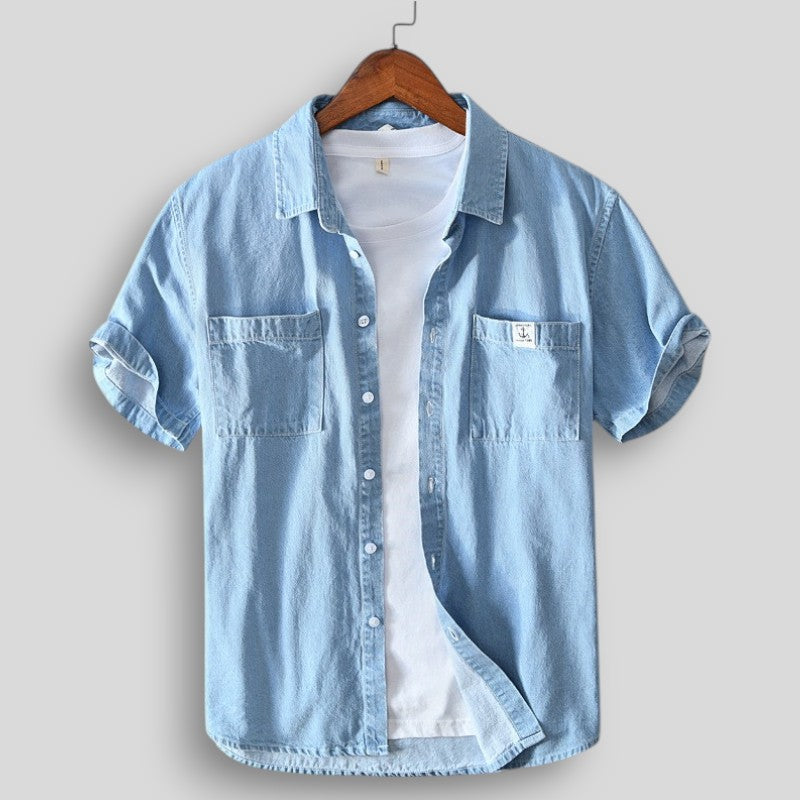 Koszula męska jeansowa z krótkim rękawem – 100% bawełna, casualowy styl