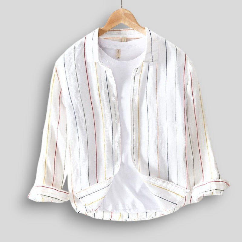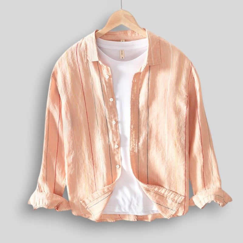 Męska koszula lniana w paski z długim rękawem – 100% len, lekka i przewiewna