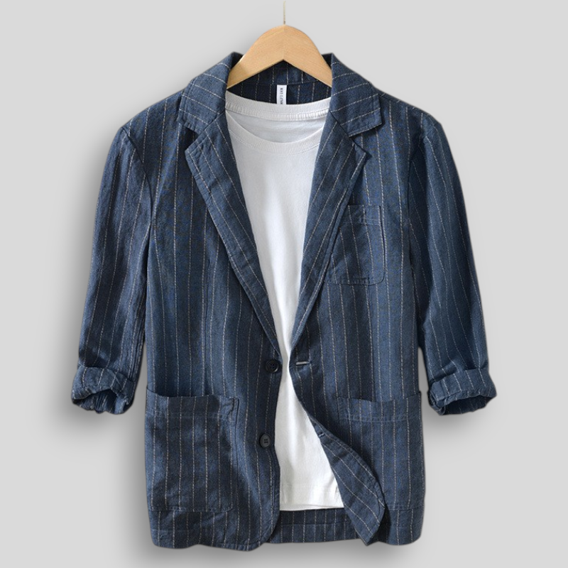 Lekka marynarka męska w paski z bawełny i lnu – casualowy styl, przewiewny materiał