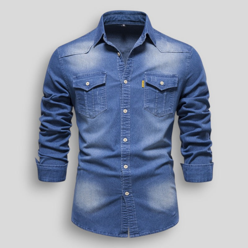 Męska koszula jeansowa z długim rękawem i kieszeniami