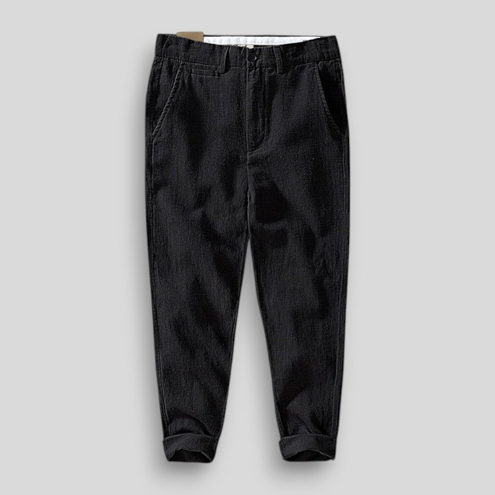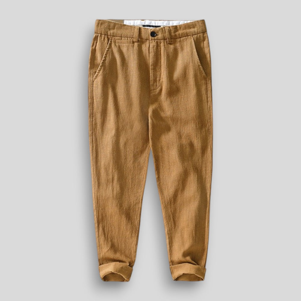 Lniane spodnie męskie z troczkiem – komfort i lekkość na lato