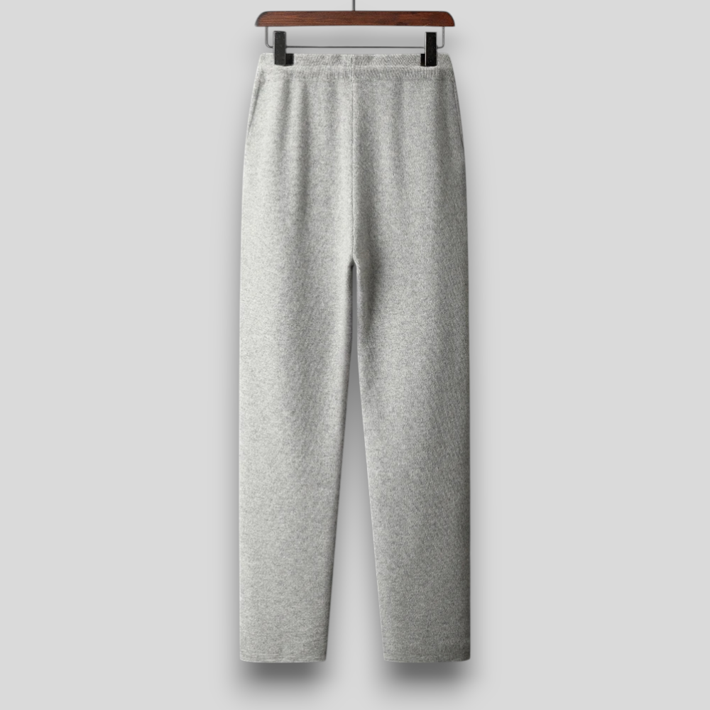 Wyjątkowe spodnie dzianinowe dla mężczyzn ceniących bezkompromisową jakość i komfort noszenia. Uszyte w 100% z najczystszej australijskiej wełny merino klasy premium, zachwycają miękkością, naturalną elastycznością oraz zdolnością do regulowania temperatury ciała. Dzięki szlachetnej strukturze dzianiny i starannemu wykończeniu, model ten łączy codzienną funkcjonalność z wyrafinowaną estetyką. Spodnie sprawdzą się zarówno w domowym zaciszu, jak i w eleganckich, minimalistycznych stylizacjach casualowych.
