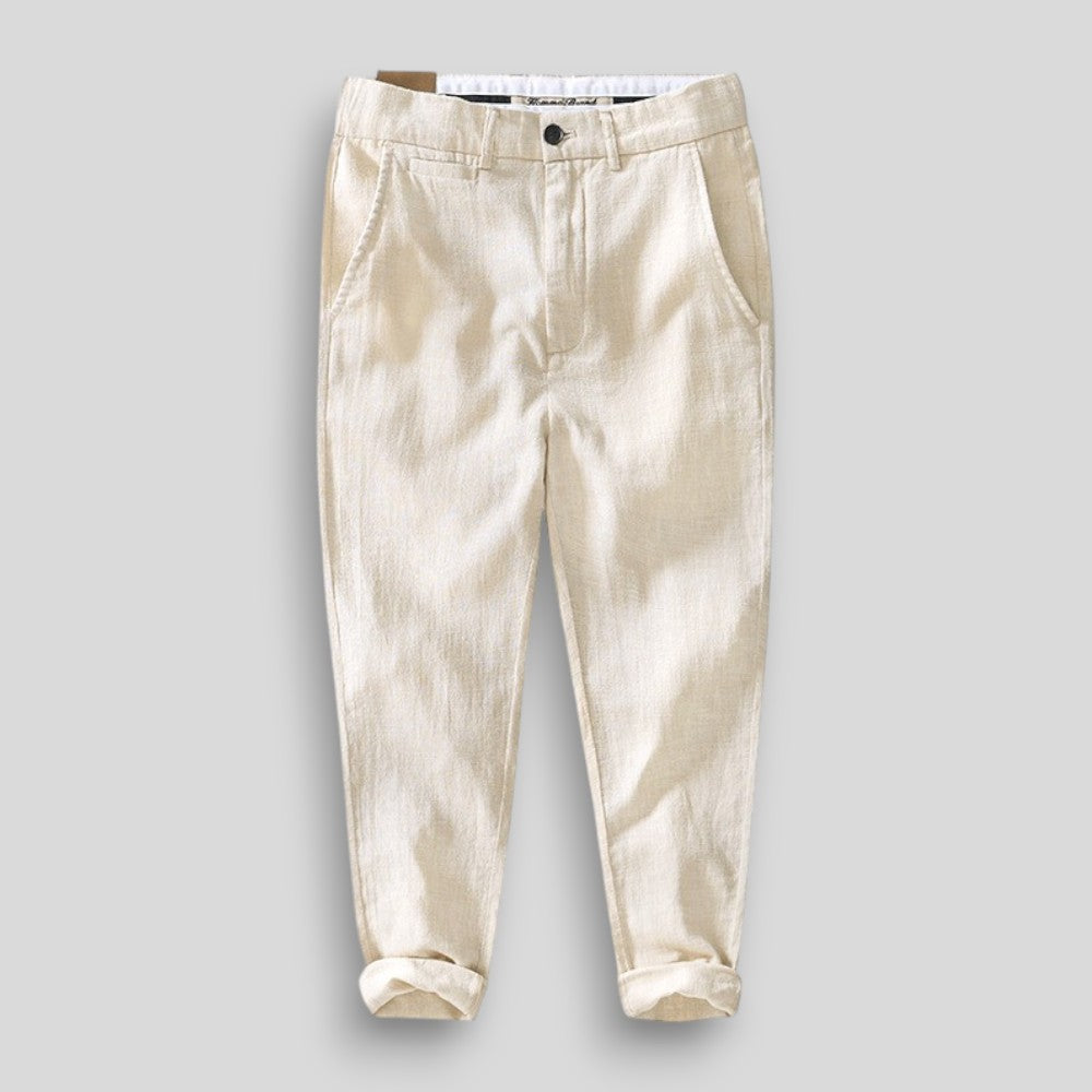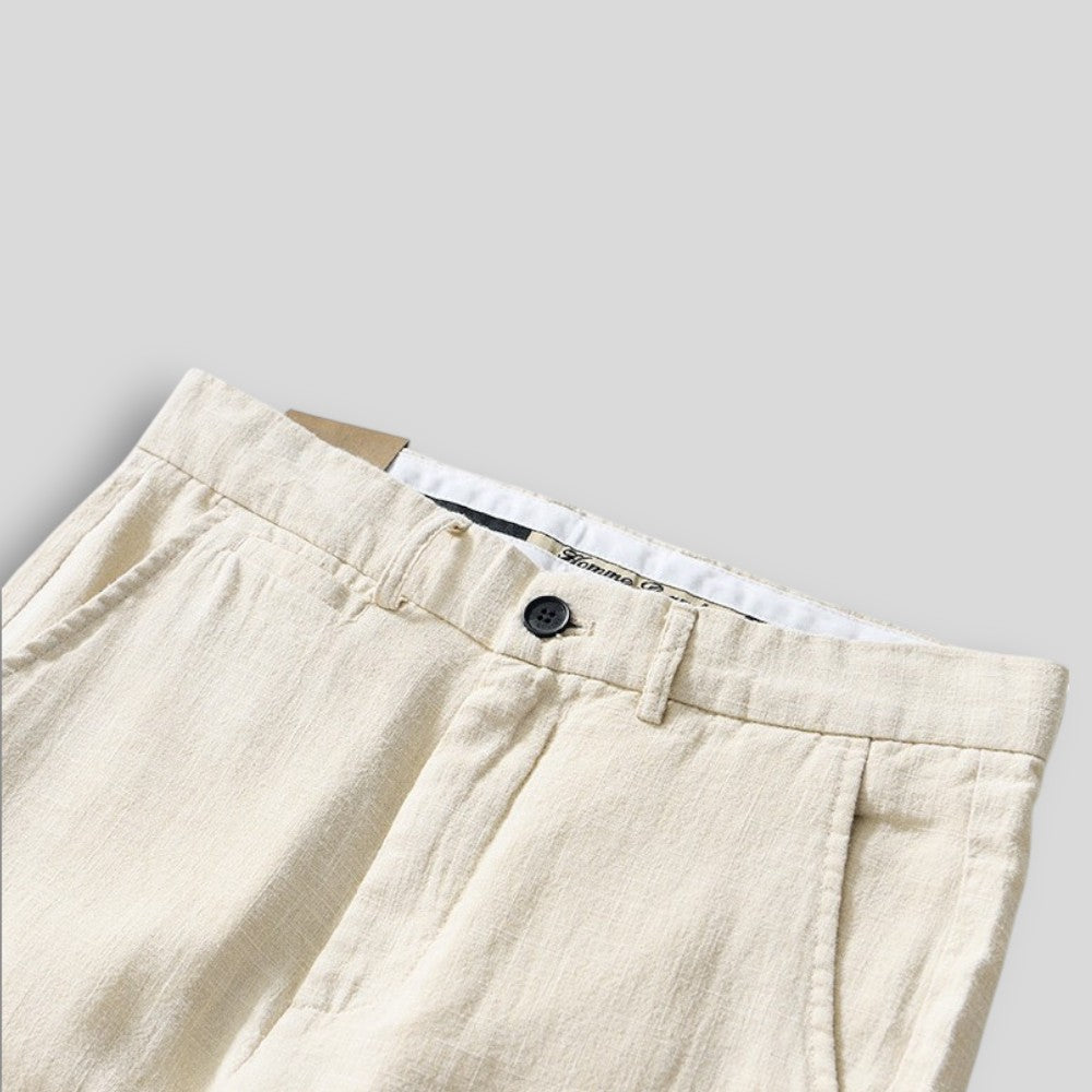 Męskie spodnie chino z naturalnej tkaniny – styl i wygoda na cieplejsze dni