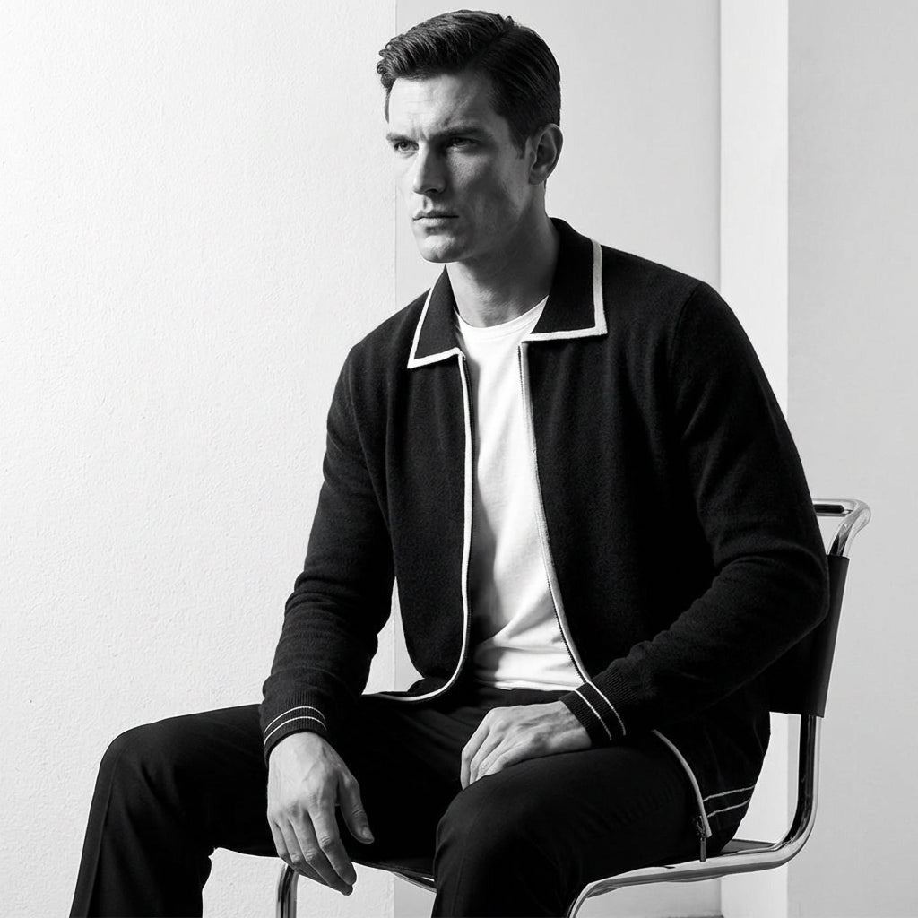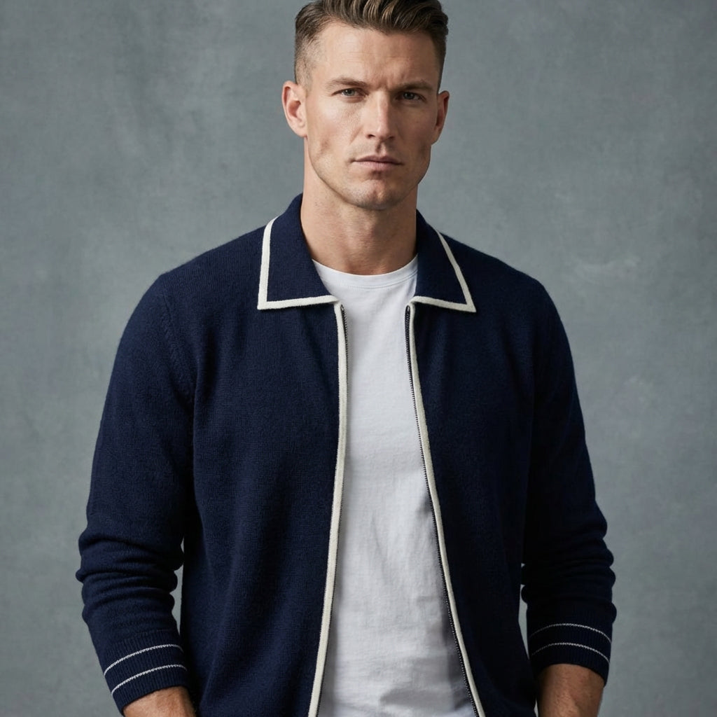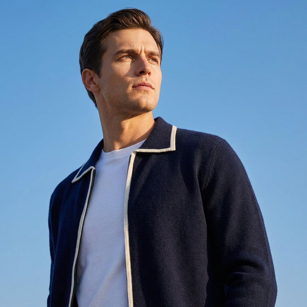 Ekskluzywna męska bluza dzianinowa z 100% wełny merino zapinana na zamek
