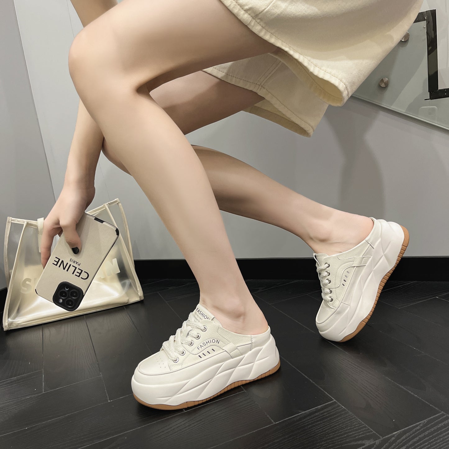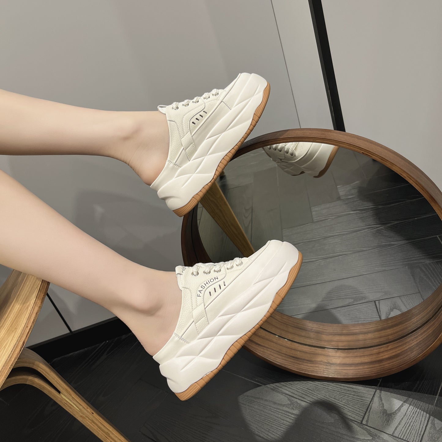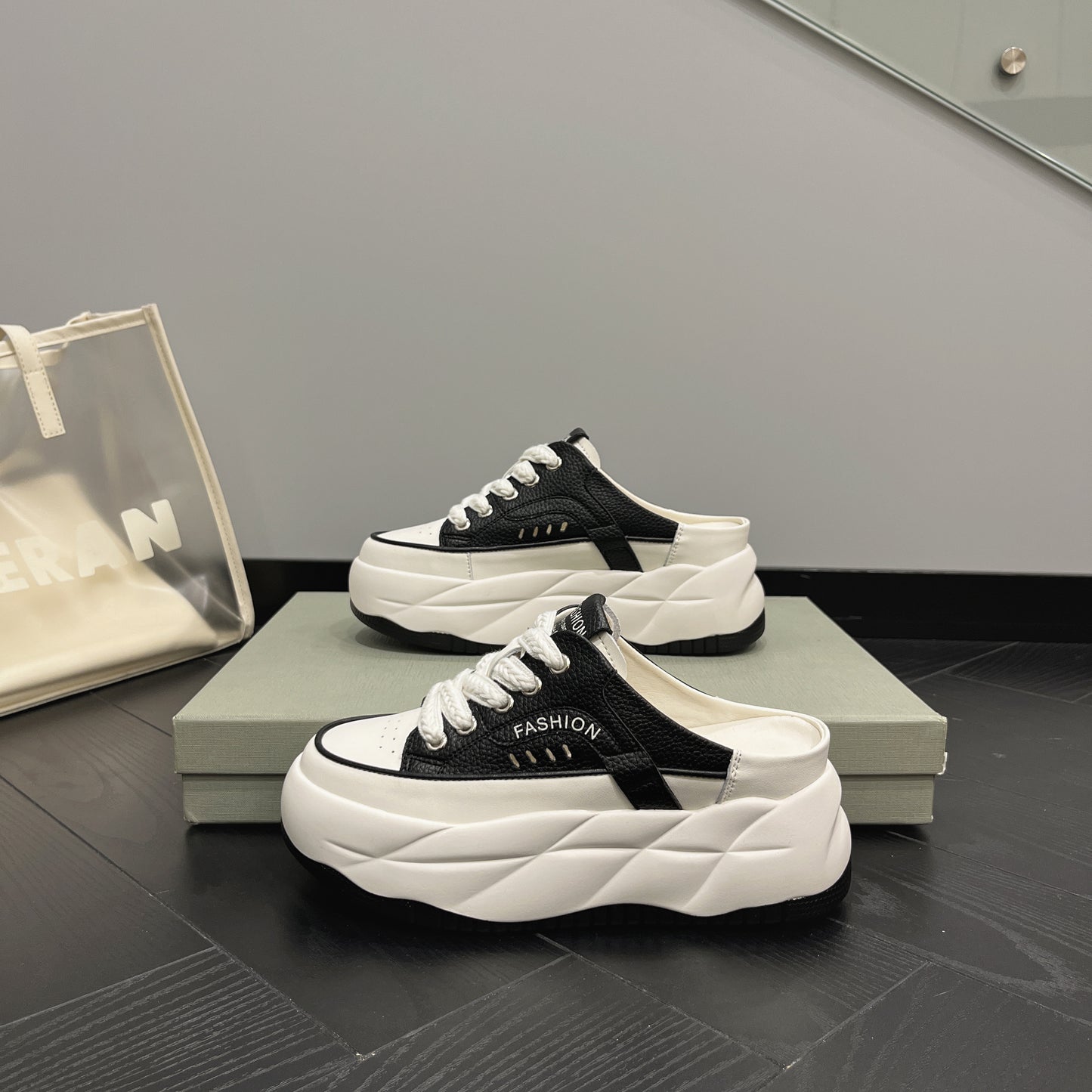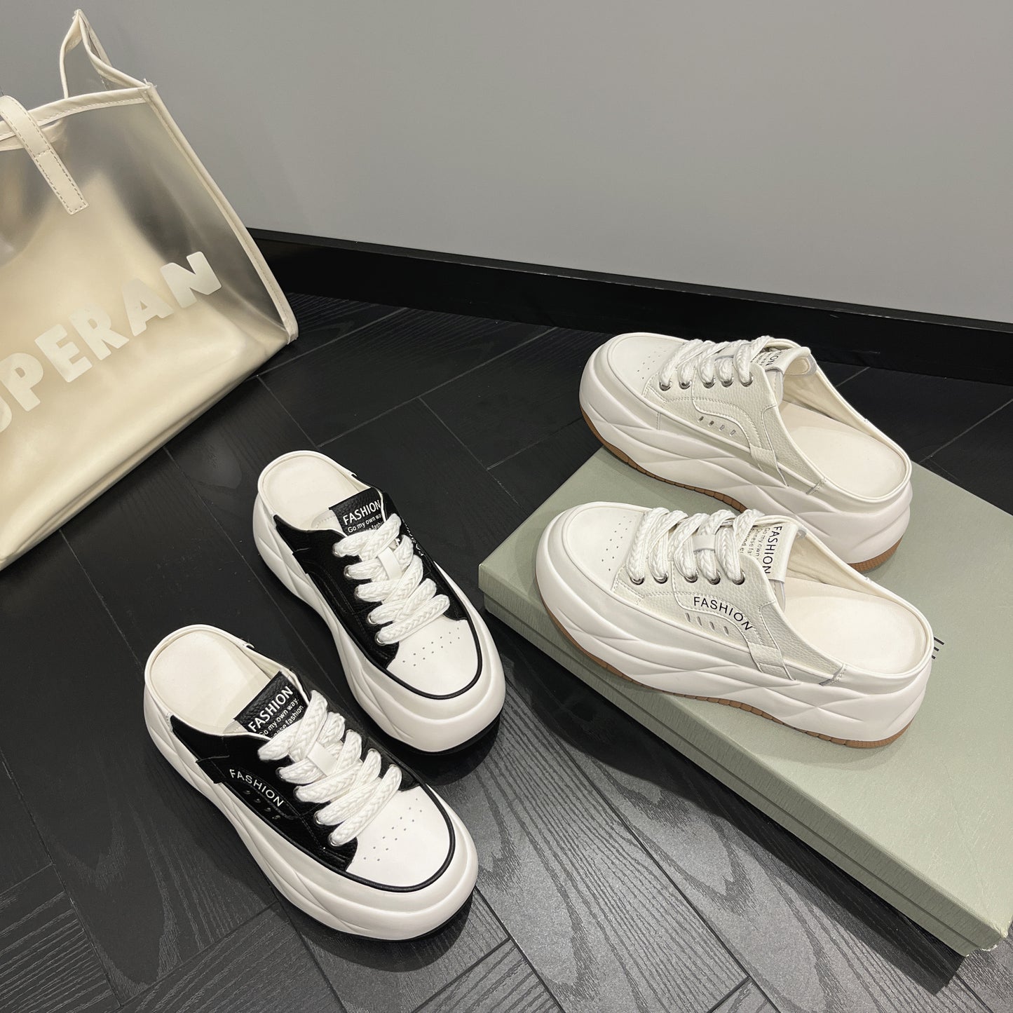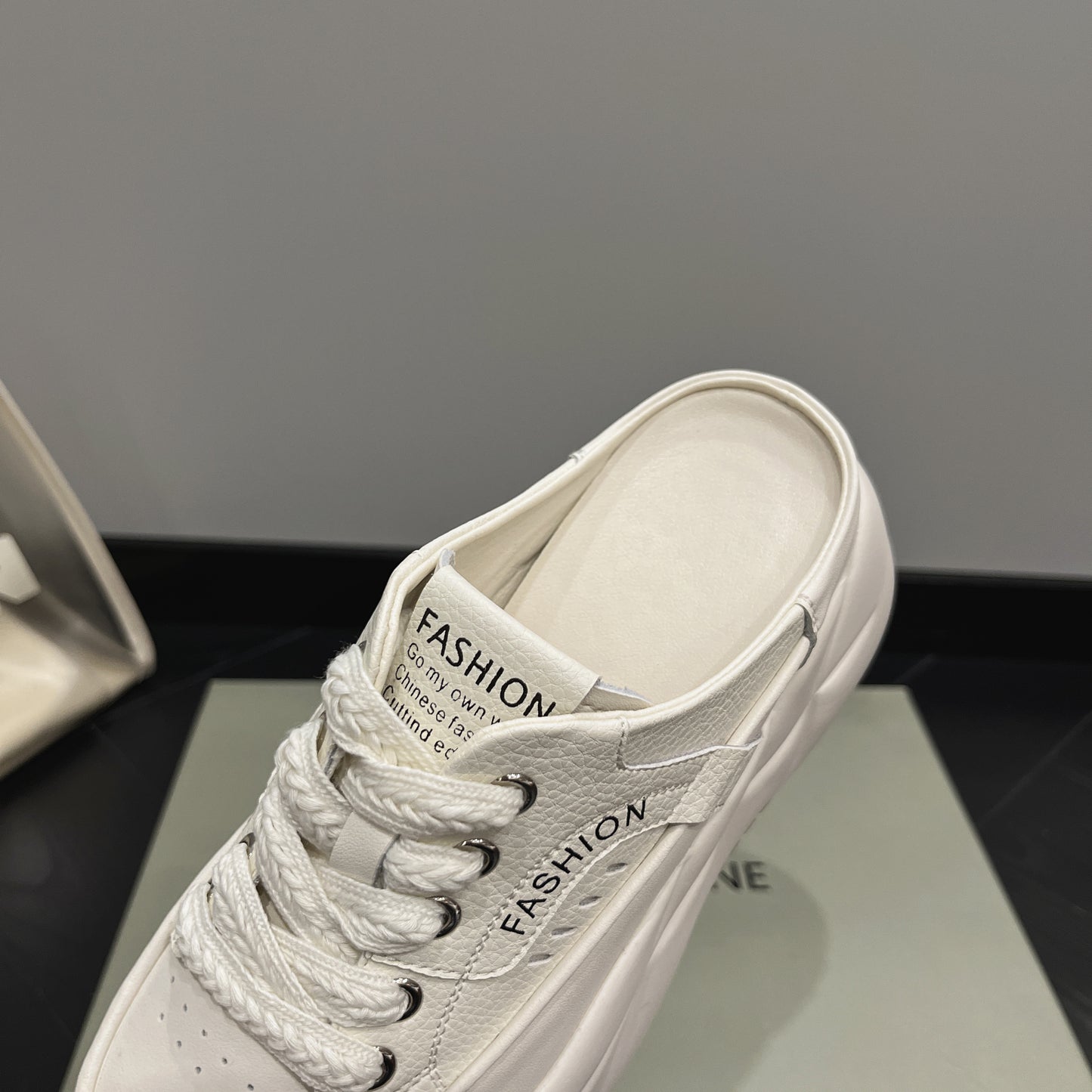 - Fason sneakersów mule – odkryta pięta, nowoczesny look