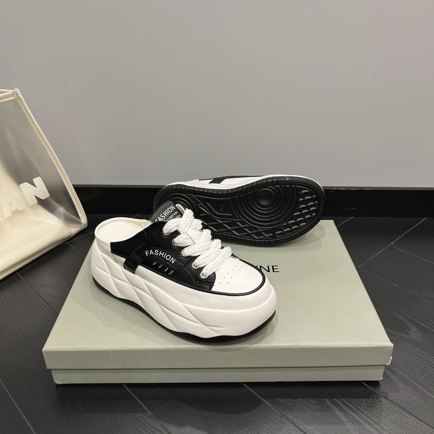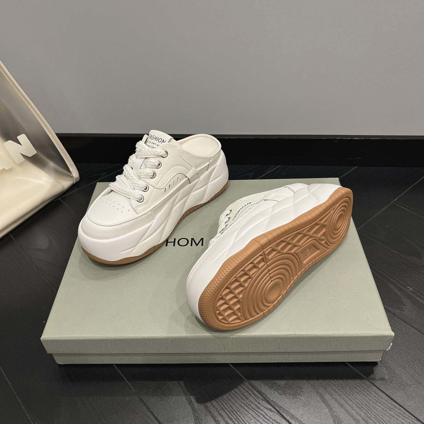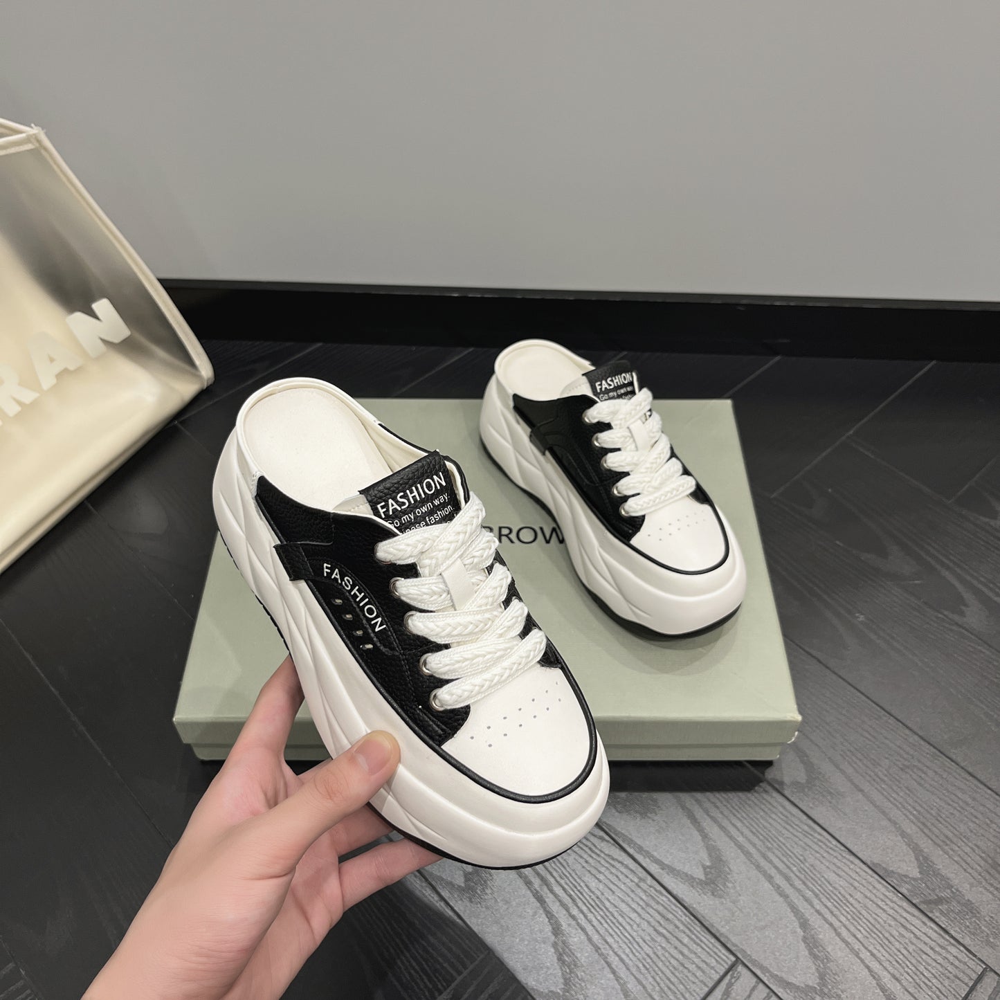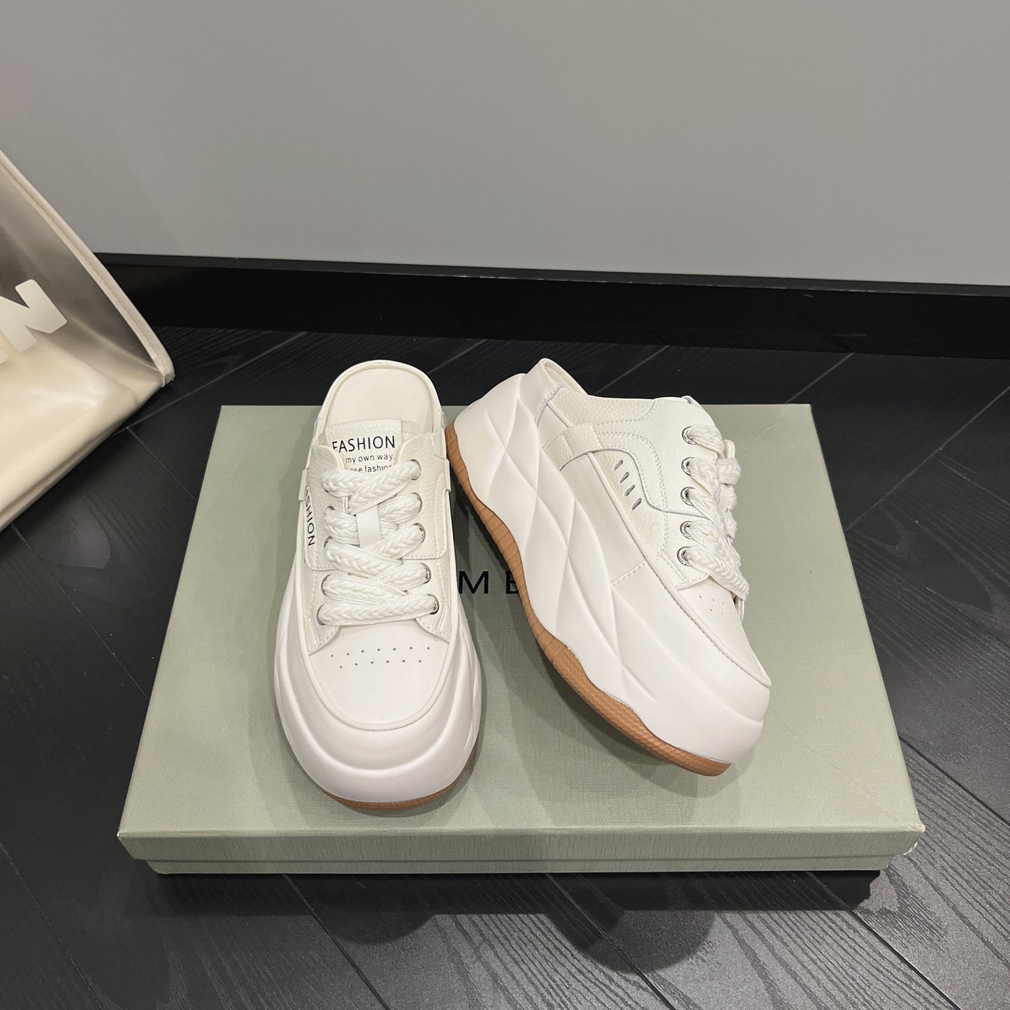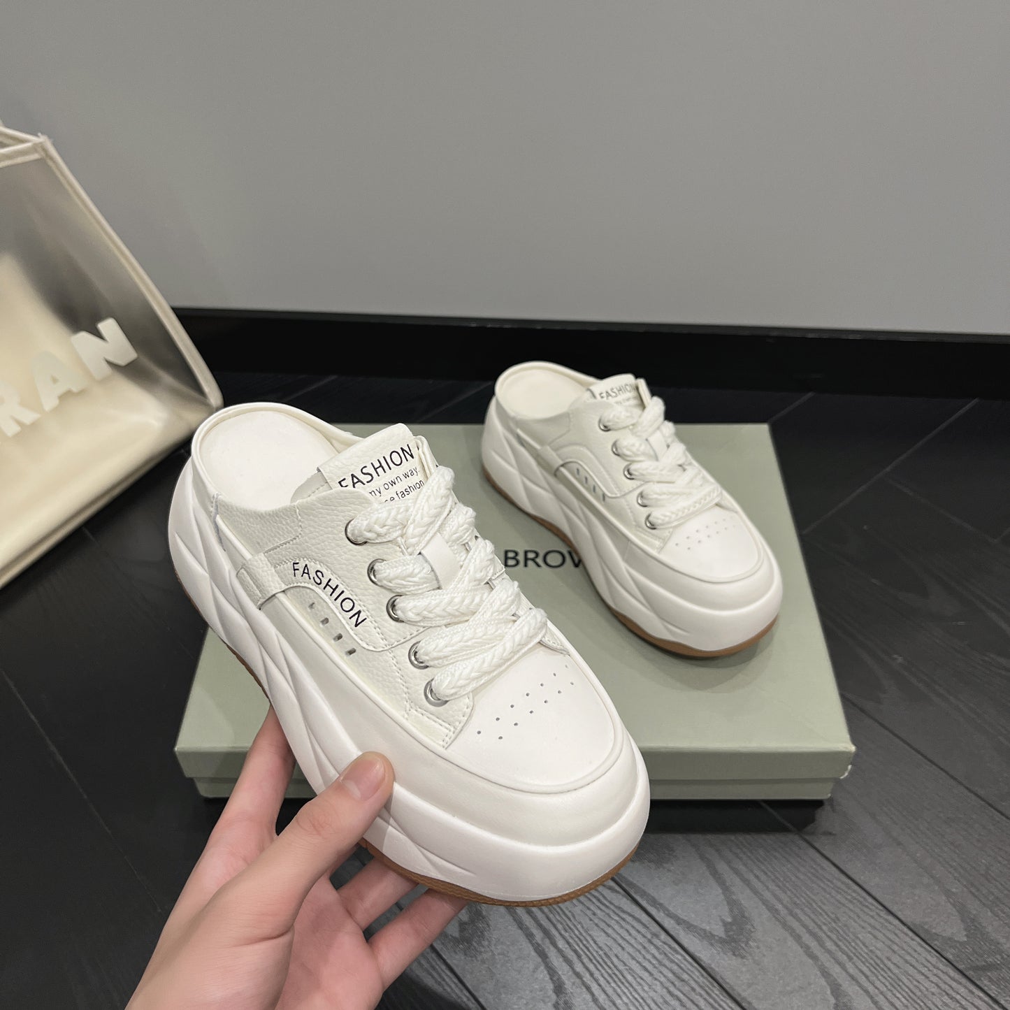 - Fason sneakersów mule – odkryta pięta, nowoczesny look