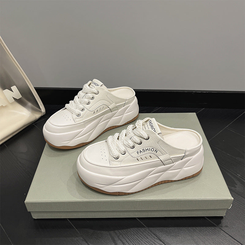Damskie sneakersy mule ze skóry naturalnej – wsuwane buty sportowe na platformie