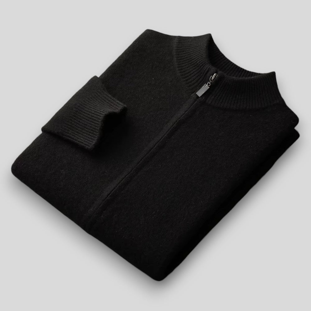 - Stylowy sweter zapinany na zamek z prążkowanym kołnierzem