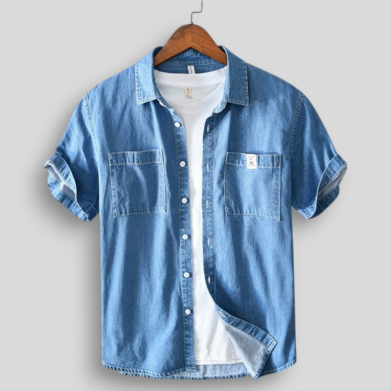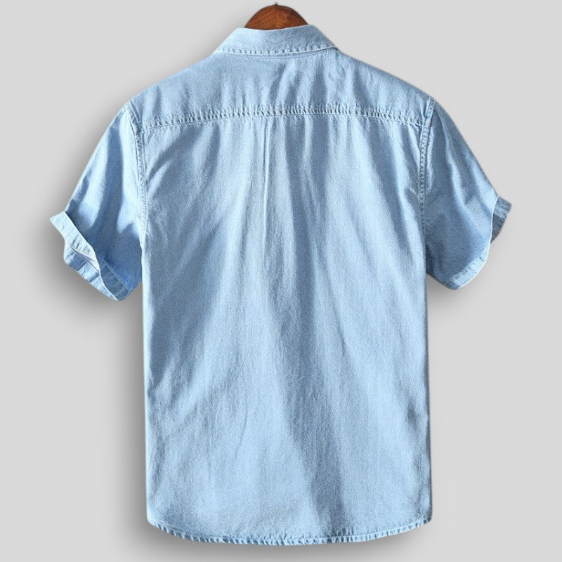 Casualowa męska koszula z krótkim rękawem wykonana w 100% z miękkiej bawełny o denimowym wykończeniu. Idealna na letnie dni – zapewnia wygodę, przewiewność i swobodę ruchów. Klasyczny fason z kołnierzykiem, zapięciem na guziki i dwiema kieszeniami na piersi sprawia, że świetnie sprawdzi się zarówno na co dzień, jak i podczas weekendowych wypadów. Można ją nosić solo lub narzuconą na t-shirt – tworząc stylowy, warstwowy look.