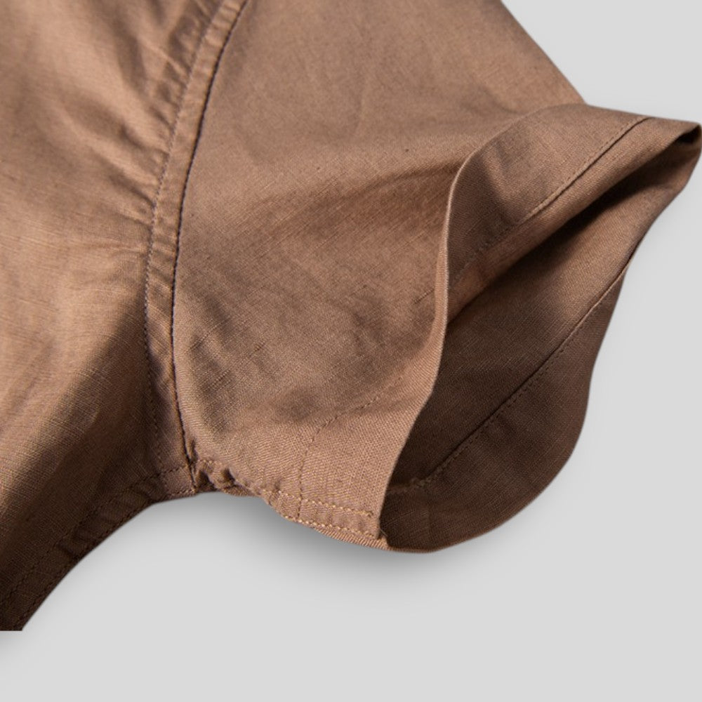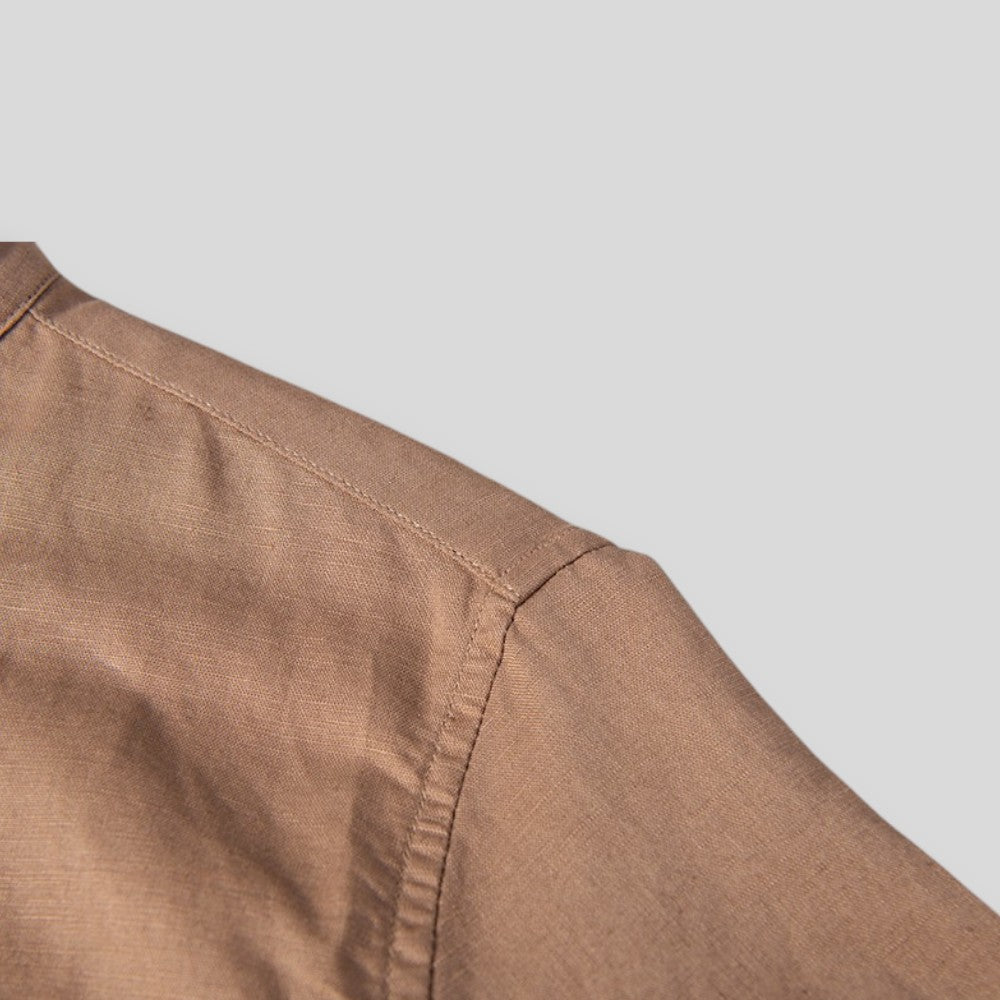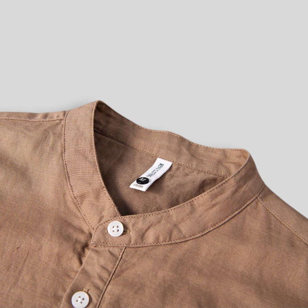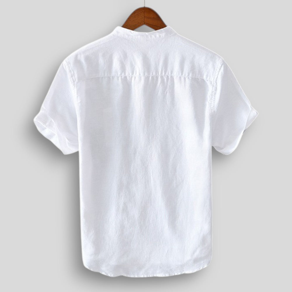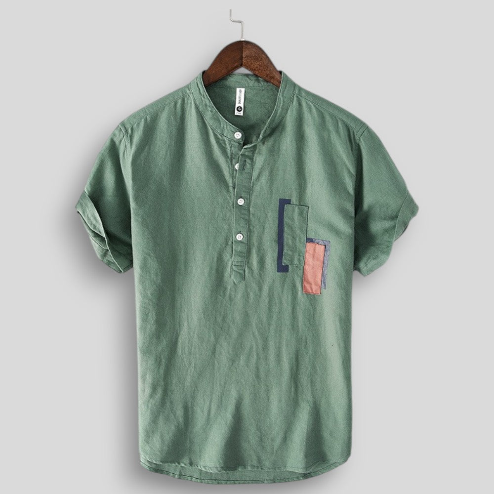 Lniano-bawełniana koszulka męska z krótkim rękawem i stójką – lekkość i styl w nowoczesnym wydaniu