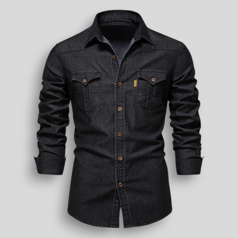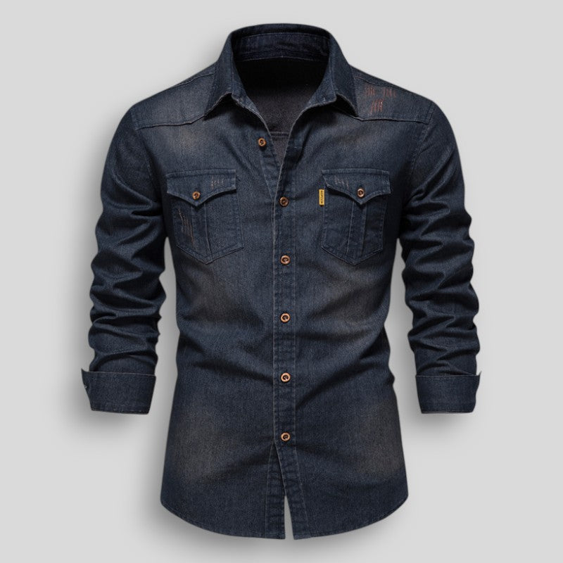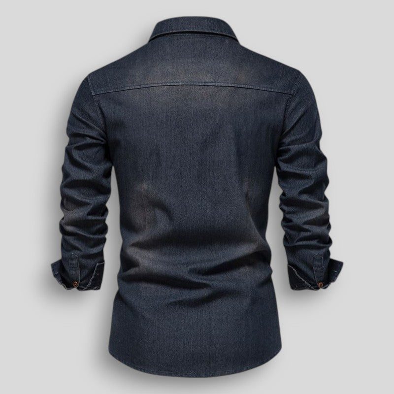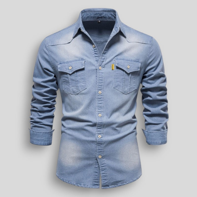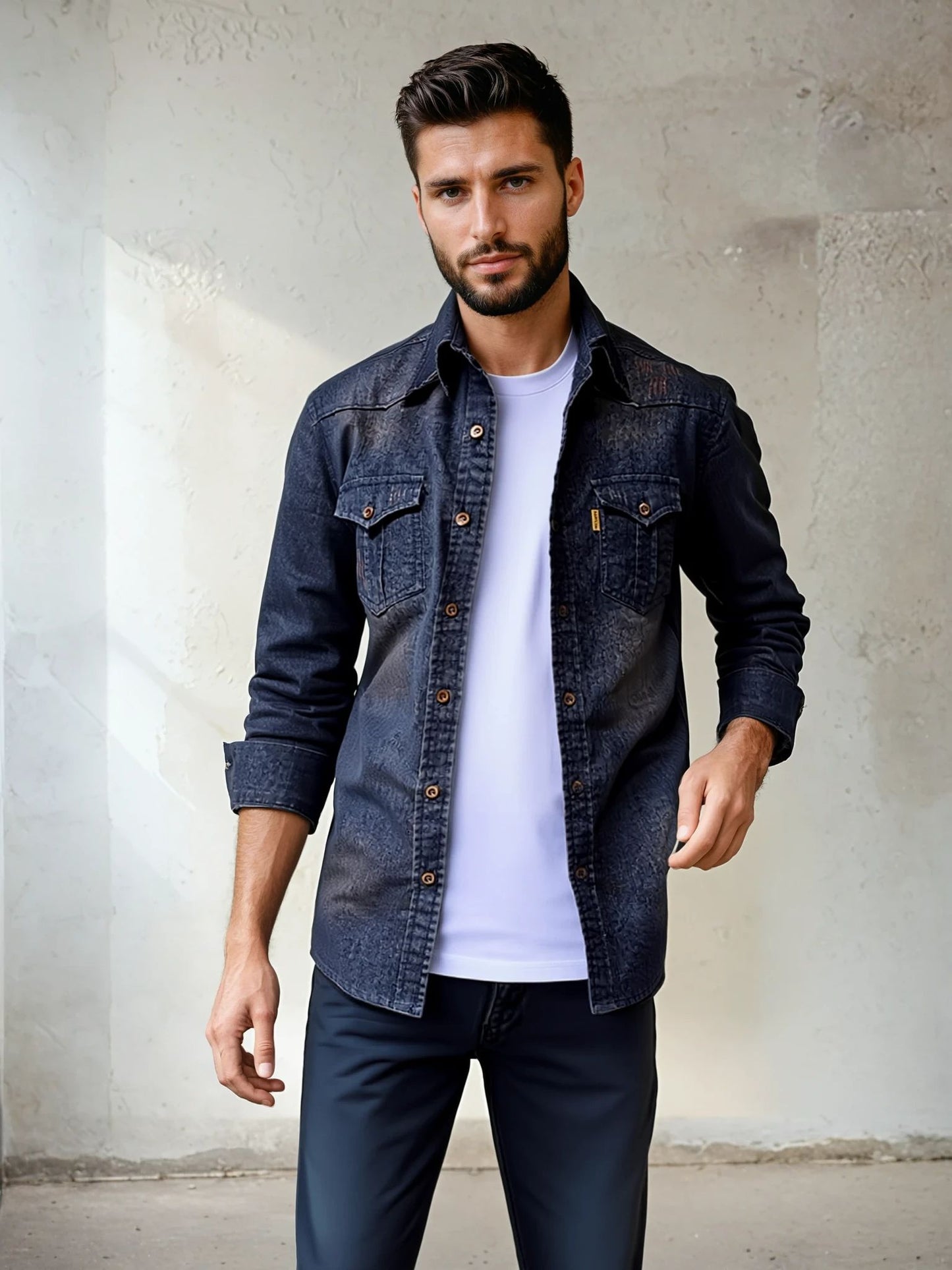 Męska koszula jeansowa z długim rękawem i kieszeniami