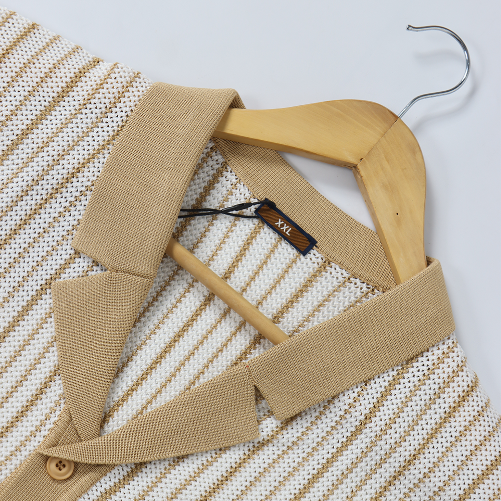 Męska koszulka retro z guzikami i prążkowanym wzorem