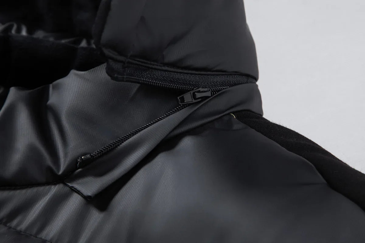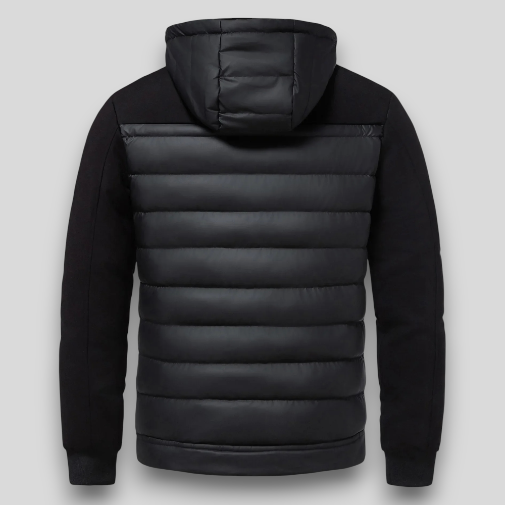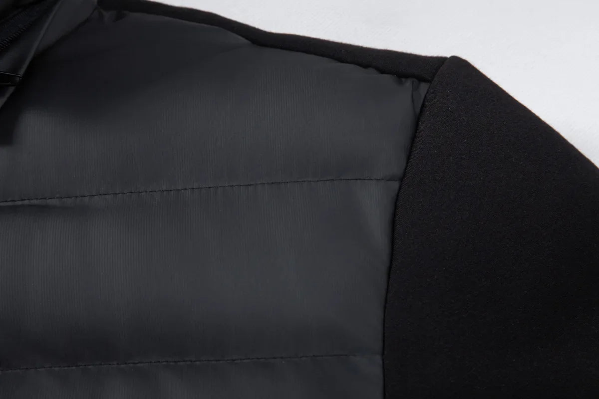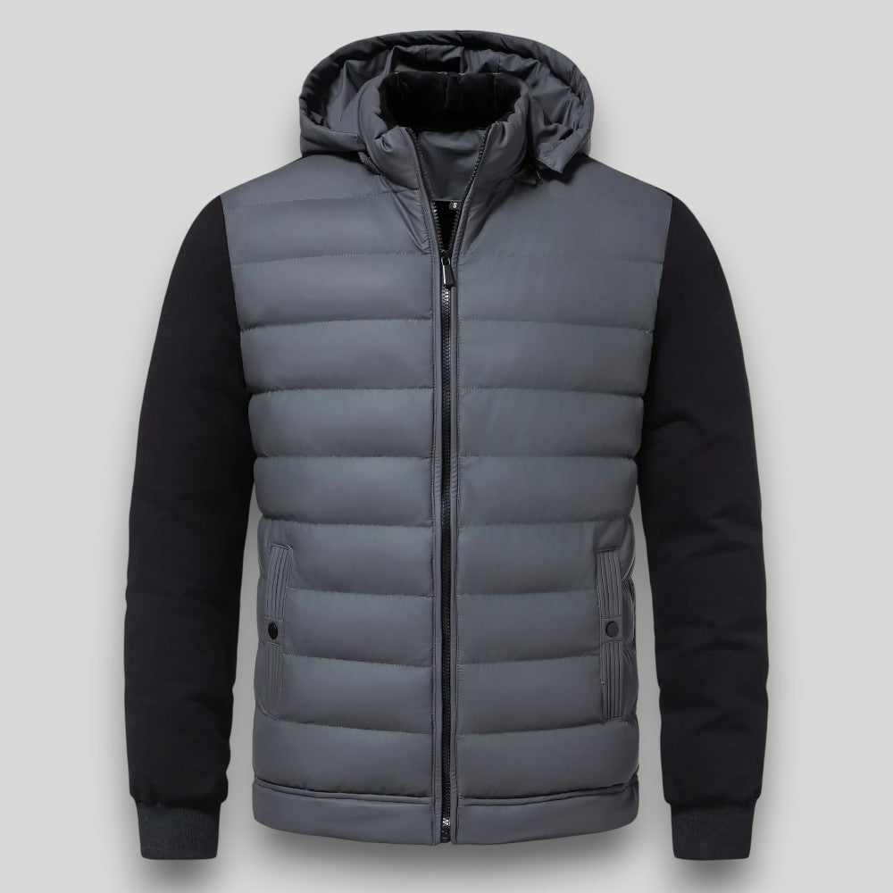 Męska kurtka pikowana z kapturem – ocieplana, casualowa, z rękawami z dzianiny